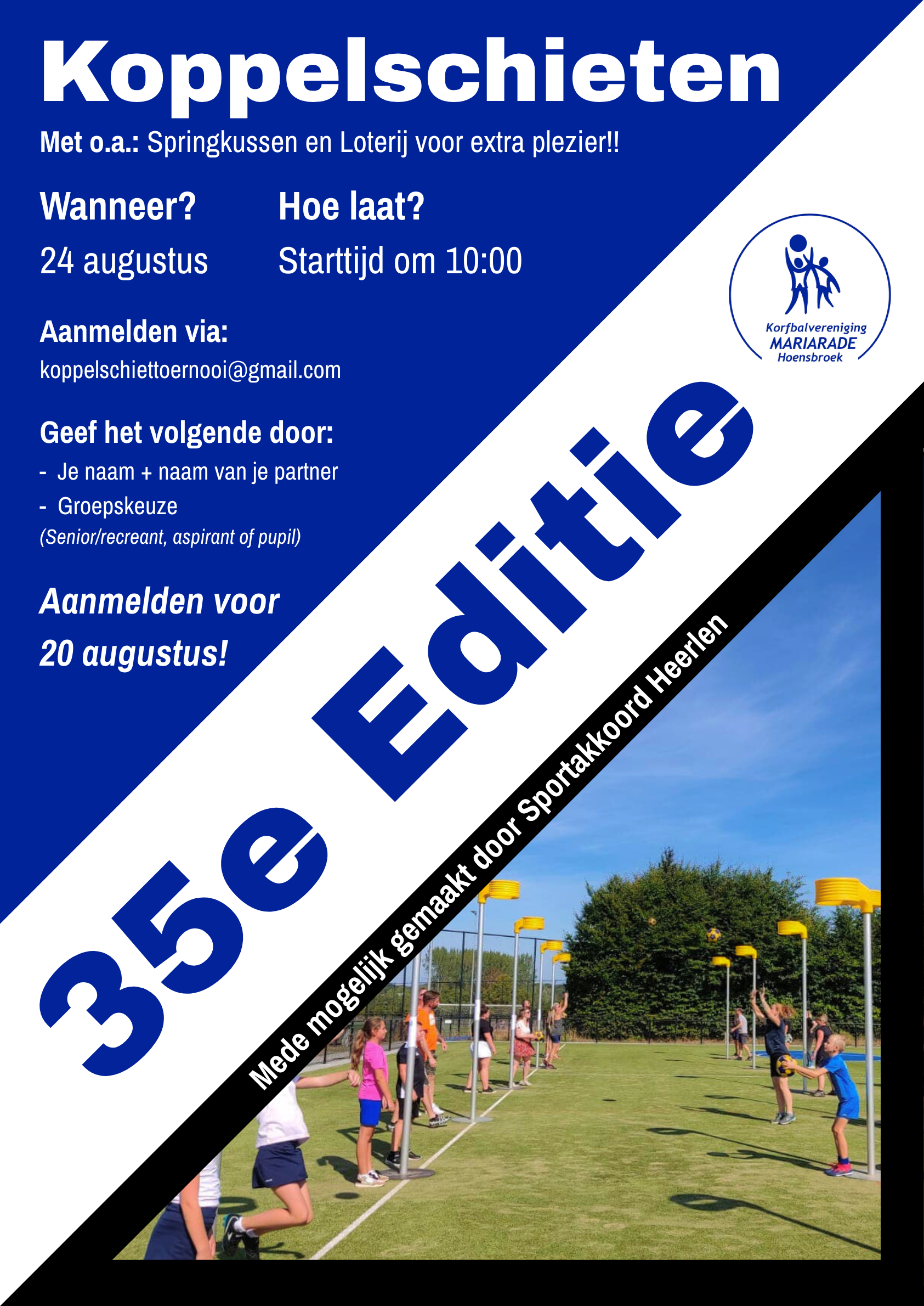 24 augustus is de 35e editie van het Koppelschiettoernooi! Doe jij ook mee? Meld je uiterlijk 20 augustus aan!